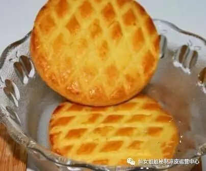 3.枣锅盔放入平底鏊里,用小文火烙制片刻,即在面上撒少许水,粘上芝麻,翻身烙另一面,待花纹起匀时,再翻个身,并垫上垫圈,继续烙30分钟左右,待呈柿黄色、锅盔熟时,将鏊端离火口,刷上糖稀,撒上白糖和青、红丝即成。食时切成长方块。