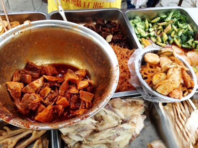 这个夜市的规模要比饮马池小很多,但也非常热闹,而且各种美食味道的平均水准要比饮马池高。烤菜、卤味、张明富热米皮等等,都在刺激着人们的味蕾。