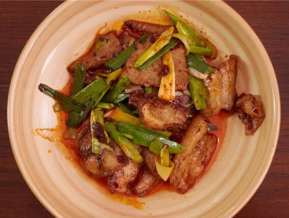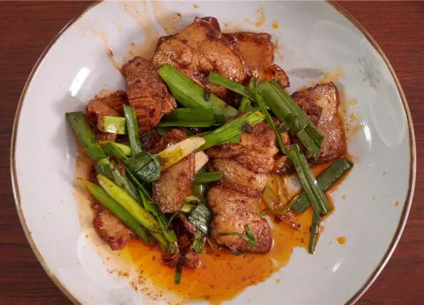 虽然现在衍生出很多新派的搭配,比如青椒回锅肉、莲白回锅肉、锅盔回锅肉等,各有其风味。但回锅肉中最正宗且经典的还是这道蒜苗回锅肉,出锅后肉片肥瘦相连,金黄油亮,蒜苗清白分明,香气扑鼻。