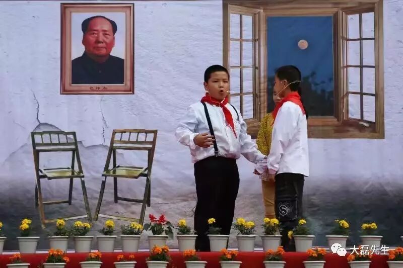 《中国少年先锋队队歌》起 ,黄小波,小刚,小丽排着队上场