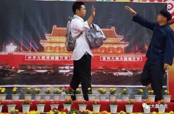黄小波 老汉儿,北京真好!哎呦,老汉儿你看,人家北京人穿的衣服好漂亮哦!(摆弄衣角)你看我的衣服土得掉渣!