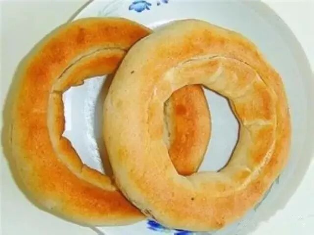 甘谷酥圈圈是以精细白面为主料,用上等胡麻油配以各味香料,精工制作而成。其制作方法是将面粉发酵,添加碱水去酸,和以胡麻油,配上鸡蛋,椒末,姜末,桂皮,精盐等佐料,经过精揉细搓后,掐成剂子,并拉条,再揉成大小粗细均匀的环状,形如微缩的救生圈,故又名“曲连”。然后将姜黄、麻油等配置好的糊状物抹在面圈上,置于上下都有炭火的鏊中双面烘烤而成,酥圈圈烤成出锅时,香气扑鼻,诱人垂涎,往往不待热气散尽,就被抢购一空。