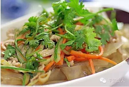 源于郏县乡镇的一种特色小吃,是当地民间集会上盛行的小吃品种,后经不断的探索与改进,如今的豆腐粉条菜不仅在做法上有区别,而且在味道上独具特色,别具一格,曾荣获“中华名小吃”称号。