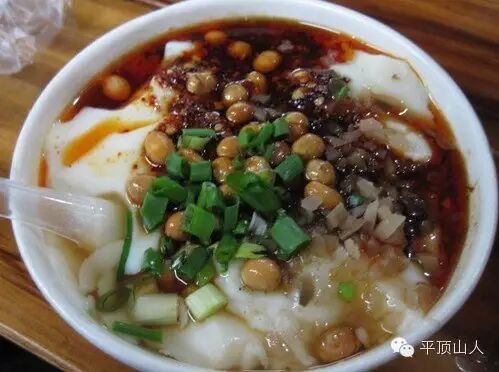 辣子热豆腐在舞钢市城乡广为食用,小贩推着自制的木架小推车,上面一方热气腾腾的新鲜豆腐,穿梭于城乡的大街小巷,成为舞钢一道独特的风景。
