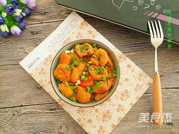 油豆腐在北方称之为豆腐泡;南方称之为油豆腐。作为豆腐的炸制食品,其色泽金黄,内如丝肉,细致绵空,富有弹性。