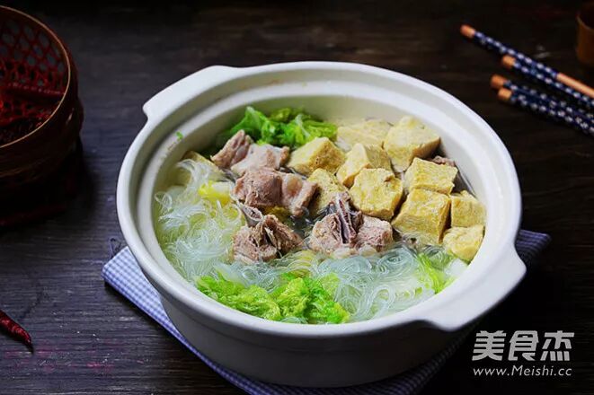 主料:白菜500克、排骨500克、粉丝1小把、冻豆腐500克
