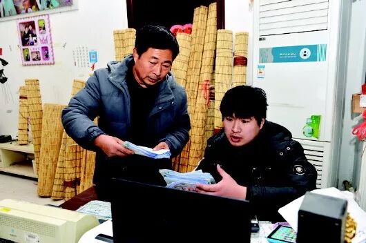 东古刘村陈宝祥家中,方以忠与他交流经营网店的经验。陈宝祥是在方以忠的带动教授下做起电商,经营苇帘,连续四年年收入过百万。