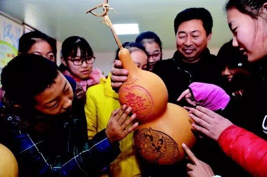 方以忠连续8年参加全国葫芦文化艺术节,2014年,方以忠的葫芦烙画技艺被列入滨州市“市级非物质文化遗产”名录。人们口中,方以忠的外号由“葫芦娃”变成“鲁北葫芦王”。