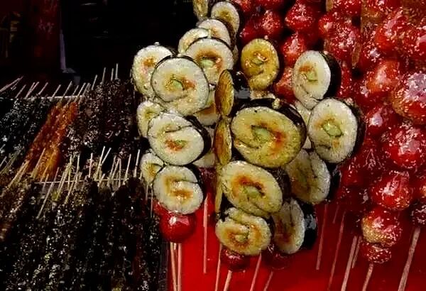 在糖葫芦里都能吃到米饭,看来美味的糖葫芦似乎在新奇的道路上越跑越偏了~