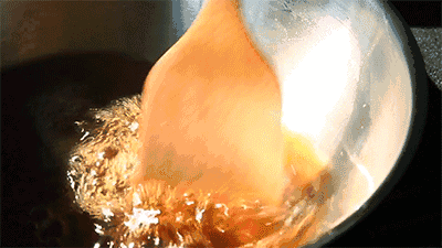 将适量冰糖(或白砂糖)倒入锅中,将糖与水按2:1的比例调和好,用猛火熬20分钟左右。如果糖熬到刚刚好,会呈黏稠的透明状。