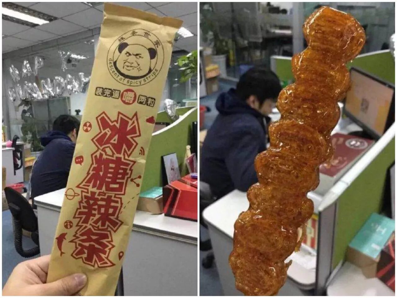 糖葫芦可以说是冬日街头必备美食了,可你吃过糖辣条吗?近日,在河北农业大学,辣条糖葫芦横空出世。