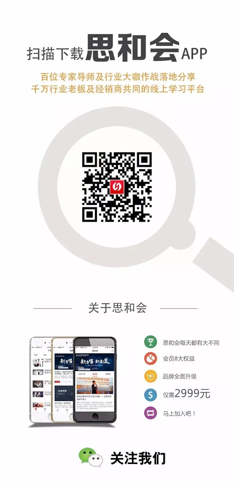下周三晚(5.17)8:30, 思和咨询合伙人,大商成长营事业部总经理贾世广老师将于线上分享《高端产品就要这样卖》,获取更多课程信息,请关注思和会每日微新闻。(加入思和会:https://jinshuju.net/f/7bjZ6z 或 点击文章下方 阅读原文)
