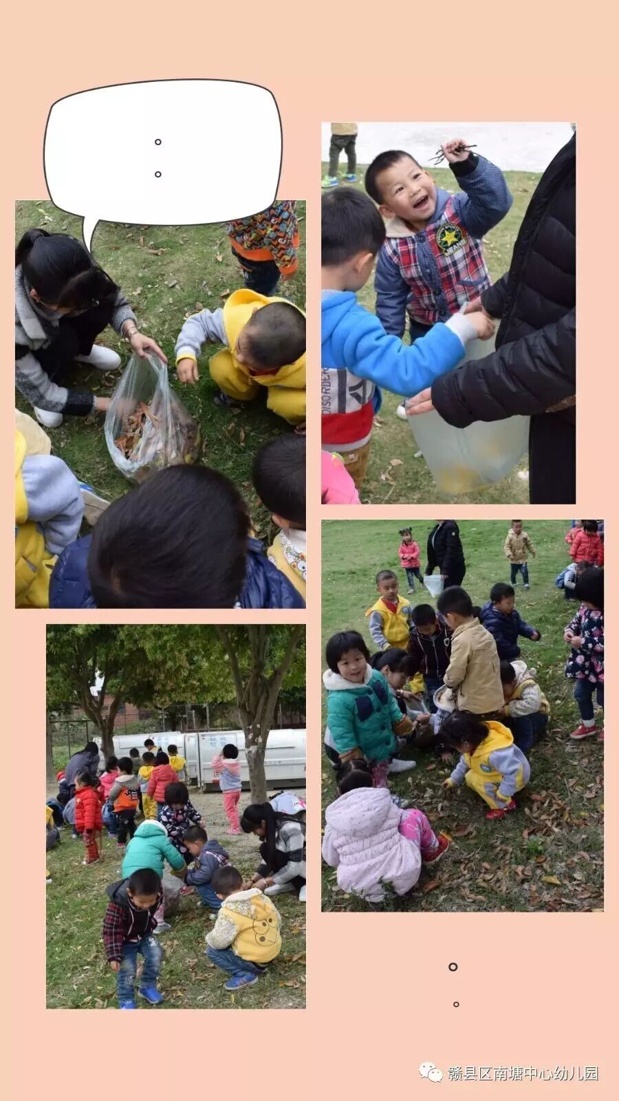 小班老师组织幼儿到幼儿园门口的草坪上捡掉落的树叶