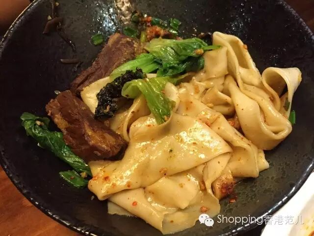 Biangbiang面,俗称“裤带面”,是一种又长又阔的面条,一碗就只有那么一大条,大家千万别担心不够吃,分量十足,绝对撑到肚皮!面条比较有韧性,不会太黏或太硬。除了裤带面,还有丰富的配料在碗中。有木耳、葱花, 蒜泥, 生菜, 一些炸紫菜。其中,紫菜是店家最成功的创新点,令biangbiang面又多了一层口感。趁着热乎劲儿,大家赶紧把配料和面条拌在一起,香气扑鼻!菜单上biangbiang面口味选择众多,大家可根据个人喜好,配上不同的配料,辣度亦可自主选择。完~美~