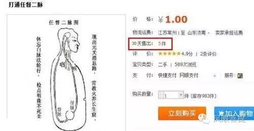 评:其实每个人心里都有一个武侠梦,小时候一群男孩子拿着棍子狂魔乱舞时,就注定这一切都只是年少时傻傻的梦,电视里那些倔强的中国式英雄都活在一种半神的状态下或者周星驰的无厘头里。此宝贝售出了5件,让人倍感欣慰的是还有一些人延续着对梦想的探索,倍感不欣慰的是他们现在是被打了,还是被打通了,打通之后呢?多年的便秘好了没?不知道这是不是甘肃某厅长的淘宝账号。