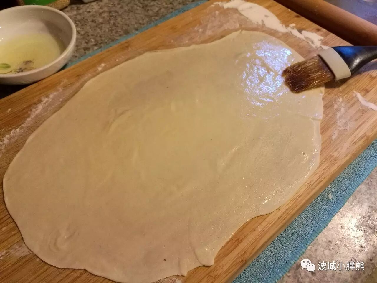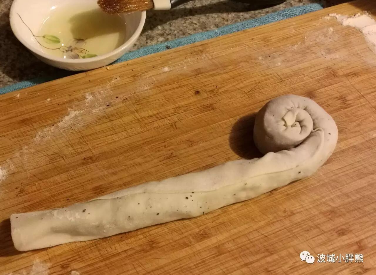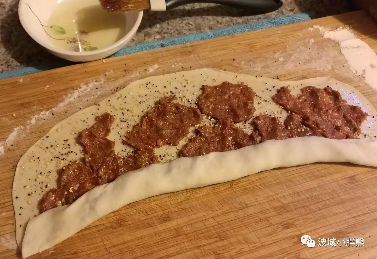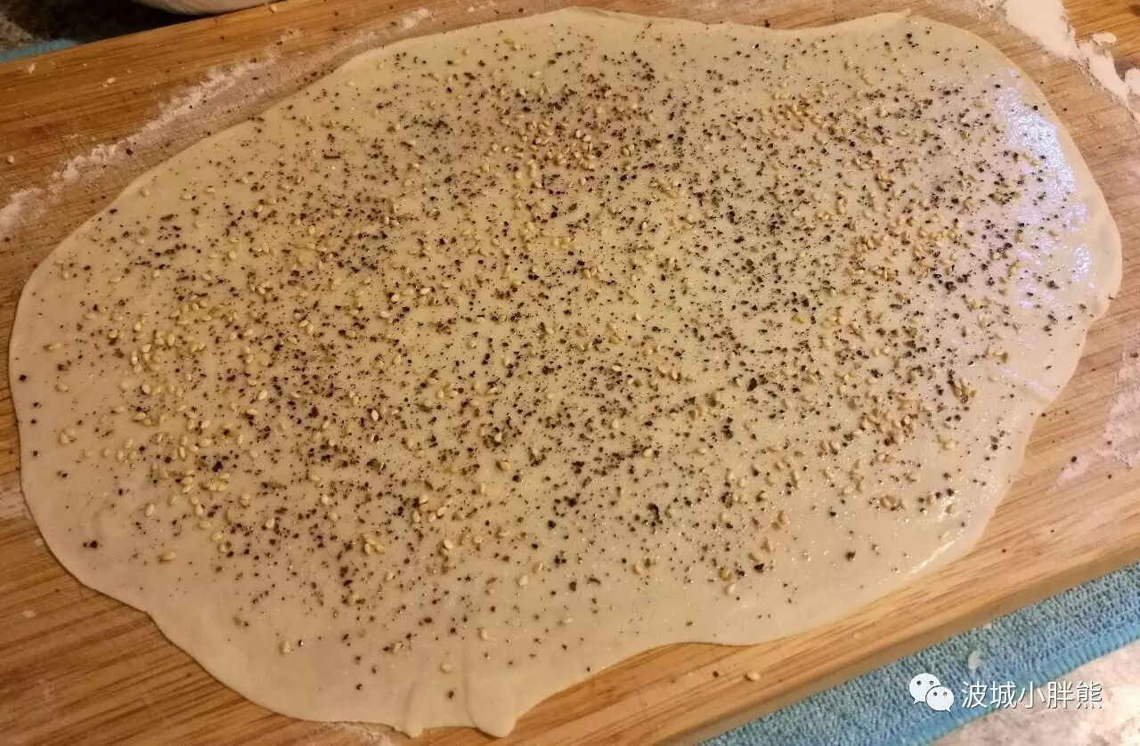 擀开成一个大概的长方形,然后就要到刷油撒料的环节了,这里给大家好好说说:先上个图: