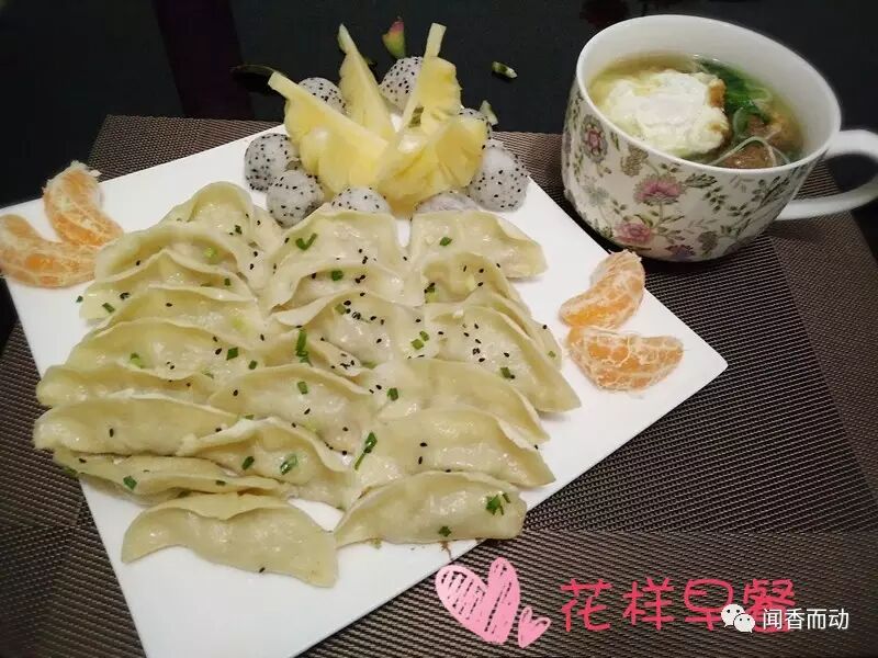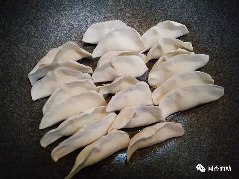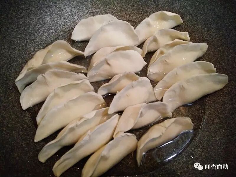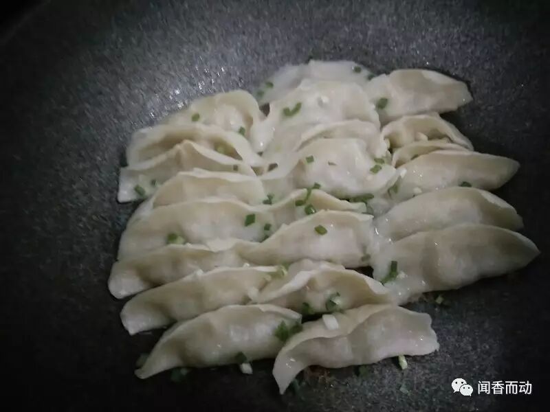 4早上拿出冷冻好的饺子,冷锅放冷油,再放入冻好的饺子摆放好,加入半碗凉水,水加到饺子的中部就可以了。盖上锅盖,开大火烧开,然后转中小火慢慢煎,听到锅里发出滋滋的声音,锅贴饺就差不多好了,此时把准备好的香葱末、黑芝麻撒在饺子表面,看饺子下面的水分没有了,只剩油了就可以关火出锅了!一定要控制好最后关火的时间,时间短了下面不焦,时间长了下面就糊了,不好看,我今天煎的火候正正好!