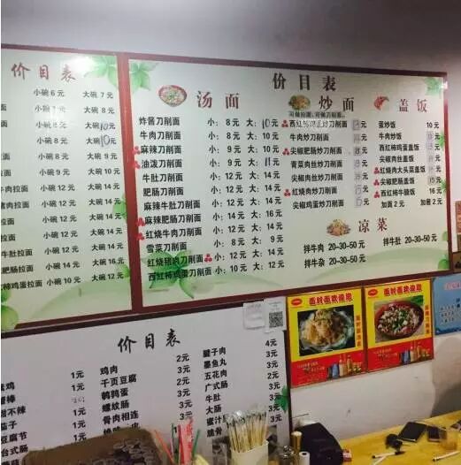价位也是便宜的没谁了,一般都是8-10元。这家素面面条口感清新,汤底也很棒。推荐牛肉刀削面,油泼面~还有超棒的蛋炒饭和炸串可以配着吃。