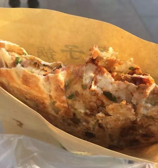 一定要趁热吃!很重要很重要!凉了口感有点影响的。饼的大小刚刚好,瘦长瘦长的,一口咬下去有肉又饼,如果不饿可以吃下好几个。上面撒着孜然,尝起来一点也不油腻。