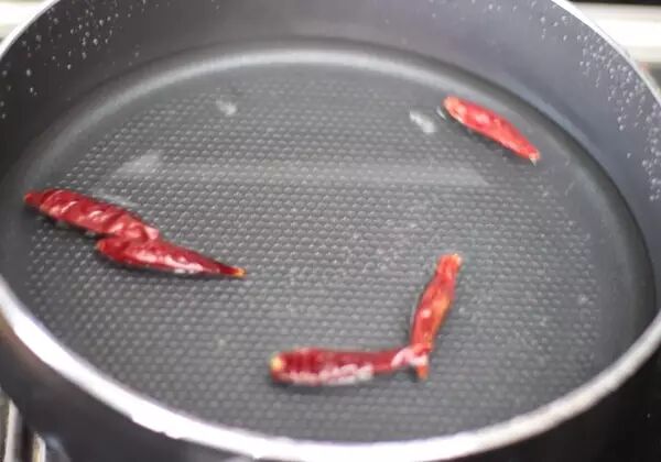 煮好的辣椒用厨房纸巾吸去多余水分,切成段,和蒜末、花椒、少许盐放到碗里,锅里放入适量普通植物油和少许香油烧到微微冒烟,然后关火等几秒钟看不见烟的时候倒入碗里。热油淋入,香气瞬间散发出来。