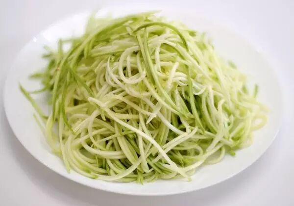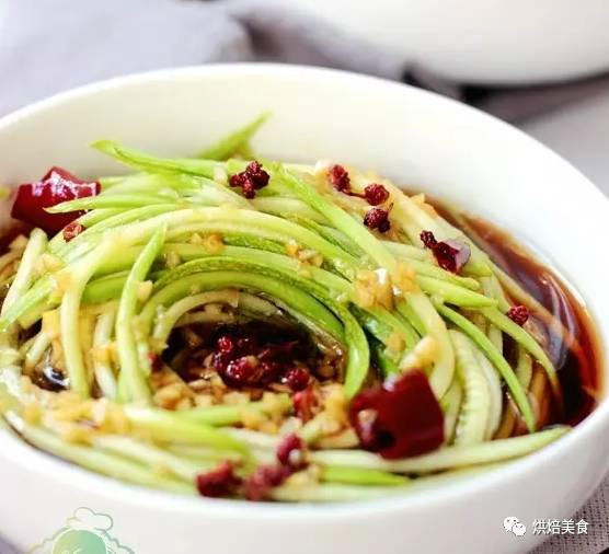 西葫芦丝放入盘里,淋上调味汁儿即可。