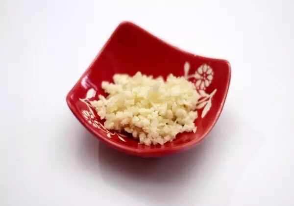大蒜切成末,先切大蒜,以便于在空气中生成更多的大蒜素。