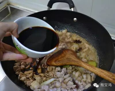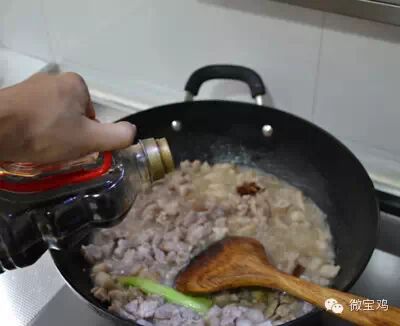7、加入醋大量大概一小碗二斤肉大概二两醋,总之量要大些,但是这也根据个人口味和后期汤的制作,因为做汤还要放醋。(虽然酸是它的特点,但咱也别酸的吃不了了)