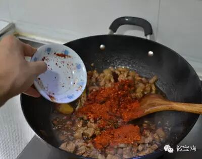 5、记住关了火再加辣椒面。总之,不能叫辣椒面糊了。