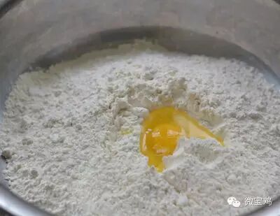 10、下来擀面面粉一斤加入鸡蛋一个,盐一小勺,碱面半小勺。