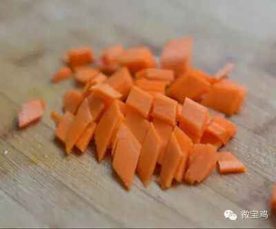 19、配菜素臊子制作:胡萝卜切菱形小薄片或者细小丁。