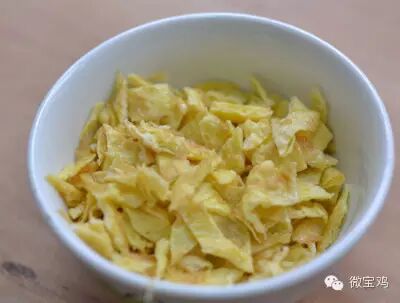 23、蛋皮切菱形块。