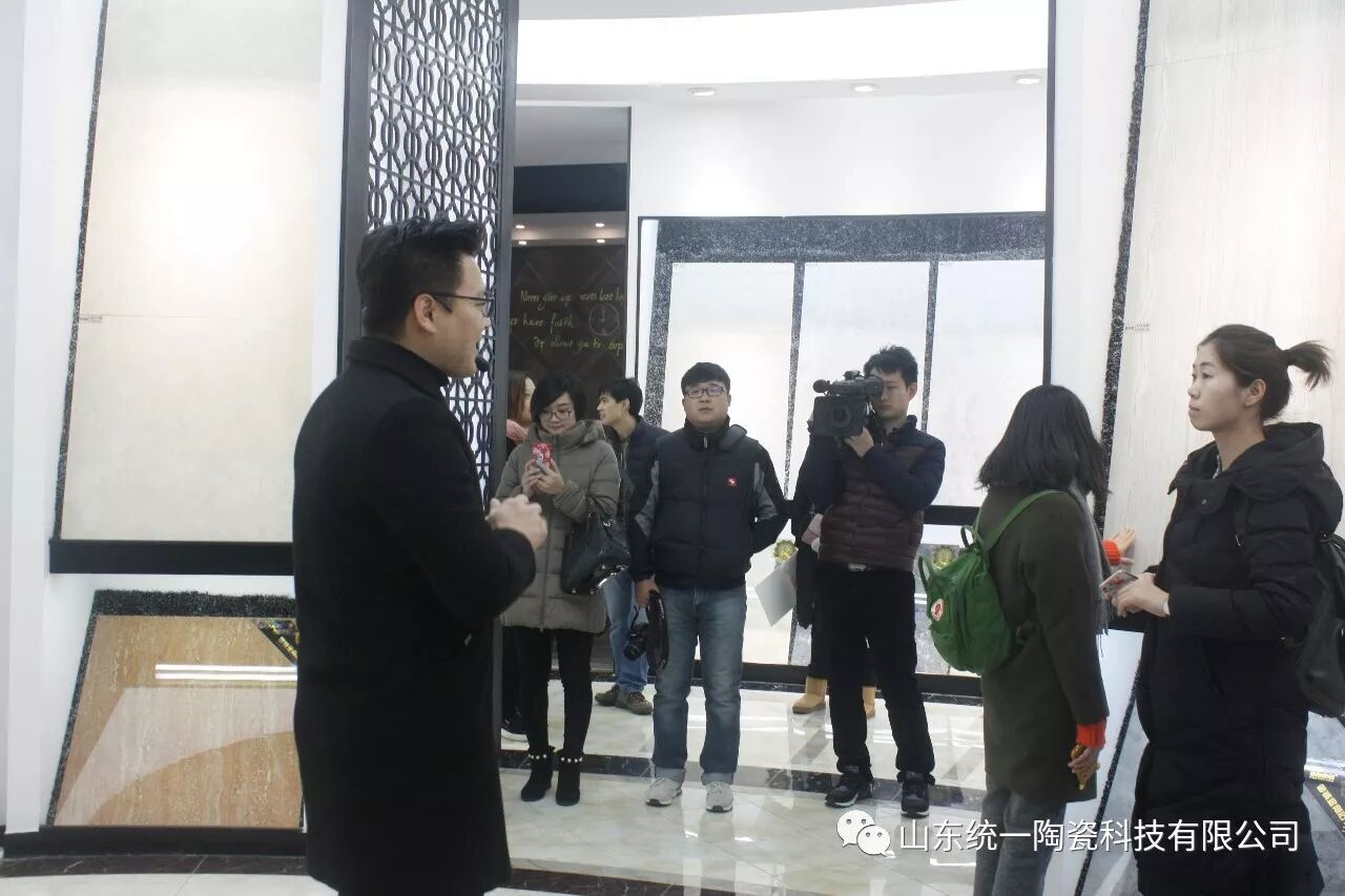 12月16日上午,“凝心聚力·共赢未来”2017—2018中国(淄博)建陶产业发展峰会“媒体观摩团淄博建陶行”采访团来到山东统一陶瓷科技有限公司进行参观采访。、人民网、新浪家居、搜狐网、腾讯网、中华网、中国网、今日头条、陶瓷信息报、陶城报、中国陶瓷网、中国陶瓷家居网、淄博日报、淄博晚报、鲁中晨报、FM100、FM106.7、淄博电视台、新聊斋、鲁中网等共三十余家媒体进行了观摩采访。