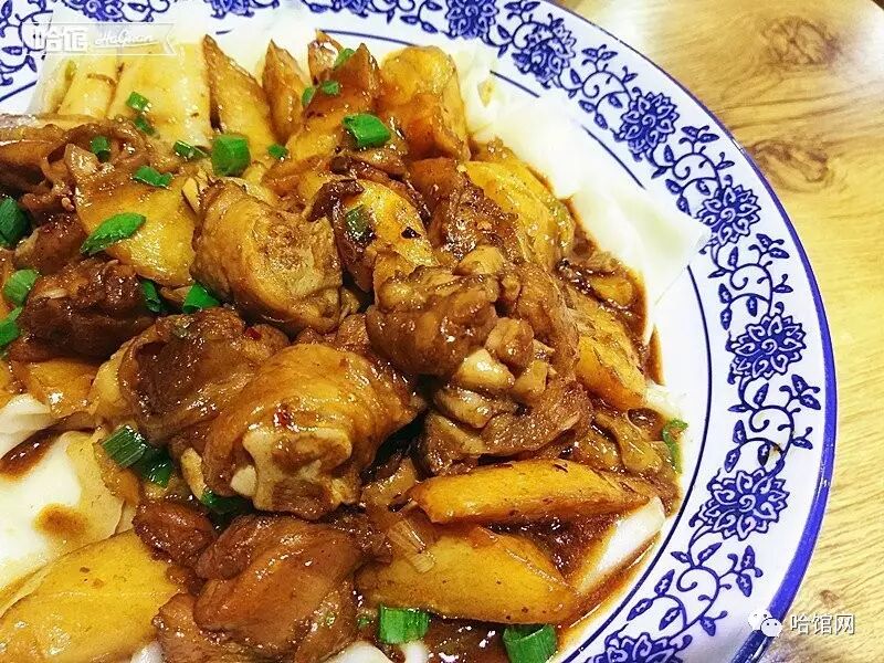 大盘鸡拌面。这个是两人份,上来真心很大一份,也是用的很宽的那种扯面,特喜欢这个面,吃起来特别筋道,感觉好像是一根面一样,趁热吃会比较好吃,要趁热搅拌咯。
