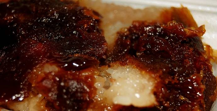 人多啊有木有,什么时候去都会有人排队。下层白饭渗入枣色,呈鲜润的绛红色泽,上面一层芸豆,呈咖啡的褐色,再上层便是暗红色的枣泥,最后枣泥上又撒一层碧绿的葡萄干,卖相诱人。 口感黏软香甜,又很饱腹,太爱了