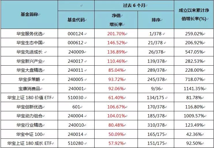 华宝服务优选(000124)今年以来、过去半年净值增长率在近400只标准股票基金中均列第一;