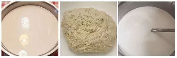 3、揉到水成为白色的面糊,就要将面糊倒到另一个盆中备用,然后往面团中再填一些水继续揉。这是洗了三遍的样子。大概洗个五六遍就可以了。