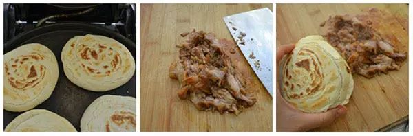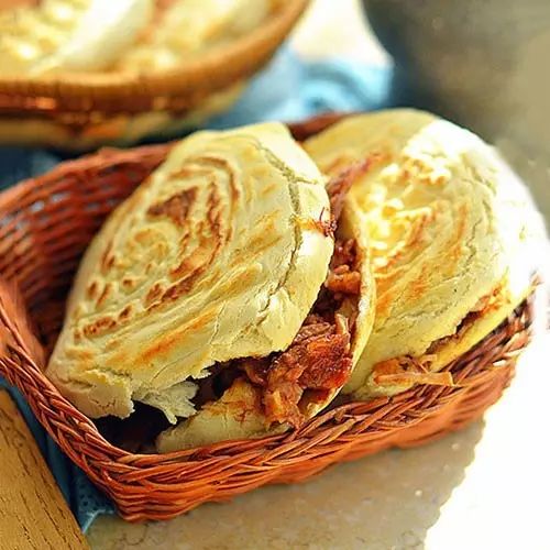 23、 把肉切碎了,正宗的极品的肉夹馍不需要给肉中加卤汁,因为肉煮的好自然多汁肥而不腻,瘦而不柴