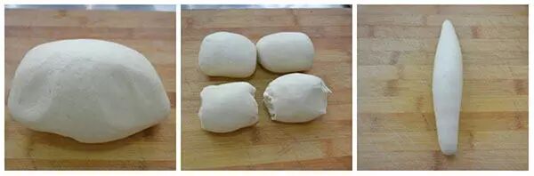 7、然后切成差不多30克左右的小面团揉成扁成条。