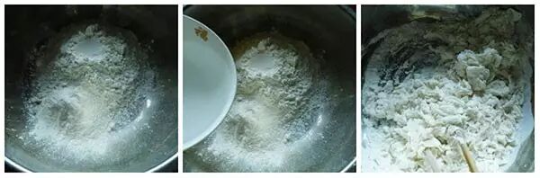2、小碗里加适量的盐用清水化开,然后慢慢加入面粉中