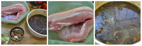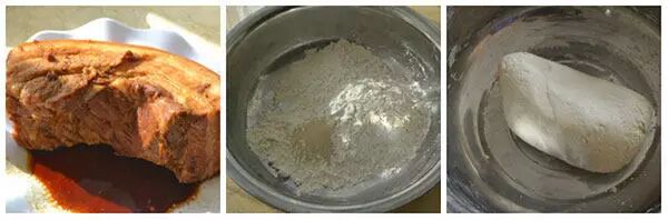 五花肉适量、面粉适量、生抽适量、老抽适量、盐和鸡精适量、葱姜适量、冰糖适量、各式香料料包适量、食用碱适量