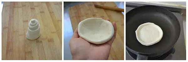 20、压一下,擀成碗状(专业的用纺锤形擀面杖)我没有就用手整个碗状。