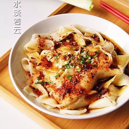 11、煮好的扯面捞入碗中放上葱末,蒜末,辣椒面,盐2克