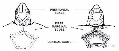 ▲黄腿和红腿的头纹亦有明显区别(左为黄腿陆龟,右为红腿陆龟)