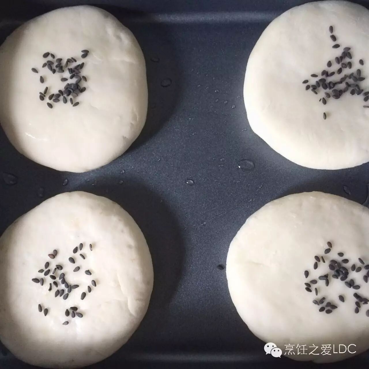 4.包成包子状,中间按扁,收口朝下,表面抹一点水,撒上芝麻