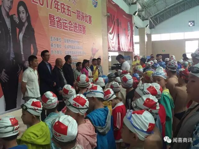 "新日杯”2017年度庆五一游泳比赛暨省运会选拔赛颁奖嘉宾:新日电动车李文伟总经理、、闻喜商讯闫亚平总经理为获奖选手颁发奖项