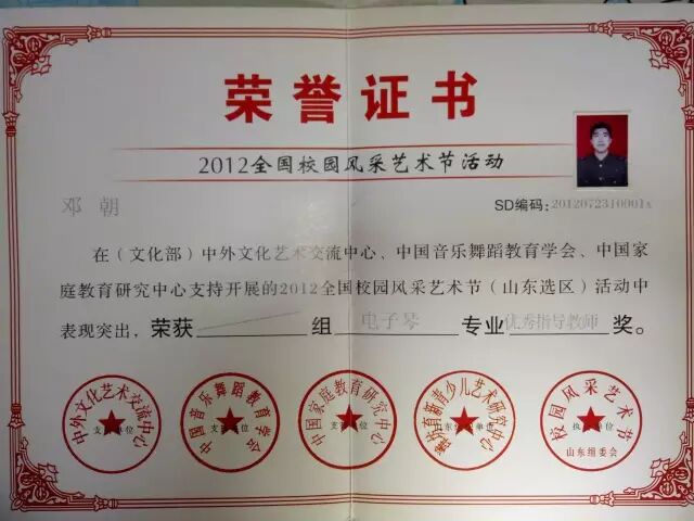 2008年5月    在烟台市“卡西欧杯”少儿电子琴大赛中,荣获优秀教师奖。