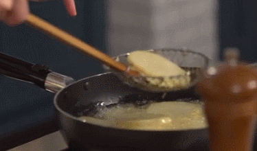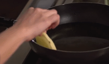 5.翻面是至关重要的一步,可以用大家熟练的技巧来翻。
