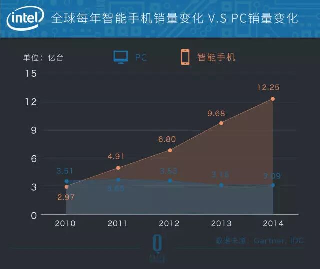 在刚刚过去的4月,Intel公布了2016财年第一季度财报。报告显示,Intel第一季度营收为137亿美元,比去年同期的128亿美元增长7%;净利润为20.46亿美元,与去年同期的19.92亿美元相比增长3%。虽然Intel第一季度业绩超出华尔街分析师的预期,但PC市场下滑的速度依旧比预期快的多,因此Intel降低了营收预期。此消息一出,其盘后股价下跌逾2%。随后,Intel宣布将裁员1.2万人,占其员工总数的11%。事实证明,我还是too young too simple了,极大低估了Intel面临的困难。与超过1万员工被fire相比,前日传来的消息恐怕更让人震惊:Intel取消Atom,或退出移动市场。在PC产业中,无晶圆厂的半导体制造商并不少见(比如Nvidia和现在的AMD)。无晶圆厂制造商们进行芯片的所有设计,但最后的生产工作会交付给代工厂(比如台积电和三星)。这样的合作方式能给制造商们节约相当一部分成本。ARM不针对市场输出任何的芯片;而是向其他的供应商提供设计IP(指令集架构、微处理器、图形处理器...)和使用许可。ARM的客户买下他们所需IP的许可,然后采用这些设计来生产自己的芯片。跟PC领域的巨头Intel相比,两者的差异非常之大。Intel打造自己的架构,尔后根据不同的市场定位设计一系列的芯片,最后设计会由自家的工厂负责生产。Intel可以说集成了芯片生产中的所有流程。当然这其中的工作量相当大,同时它也能从产品中获得很高的回报。移动处理领域不同于PC领域。在PC上,Intel能够驱动整个平台的定义,其结果是处理器成为配置清单上的大头。而在智能手机和平板上,主流的应用处理器其实很容易控制在设备价格的10%以内——通常是占到一个个位指标(比如400刀的设备配置15刀的SoC,也就是占到总价的3.75%)。作为全球最大半导体芯片制造商,个人电脑市场贡献了Intel将近60%的营收。Intel还不会立即退出平板电脑市场。之前Intel已经调整了战略,不再通过巨额的补贴,购买平板电脑芯片的份额。Intel未来将会用其他酷睿等高性能处理器主打平板电脑中的混合平板(搭配键盘可取代笔记本电脑)市场,执行利润重于市场份额的战略。