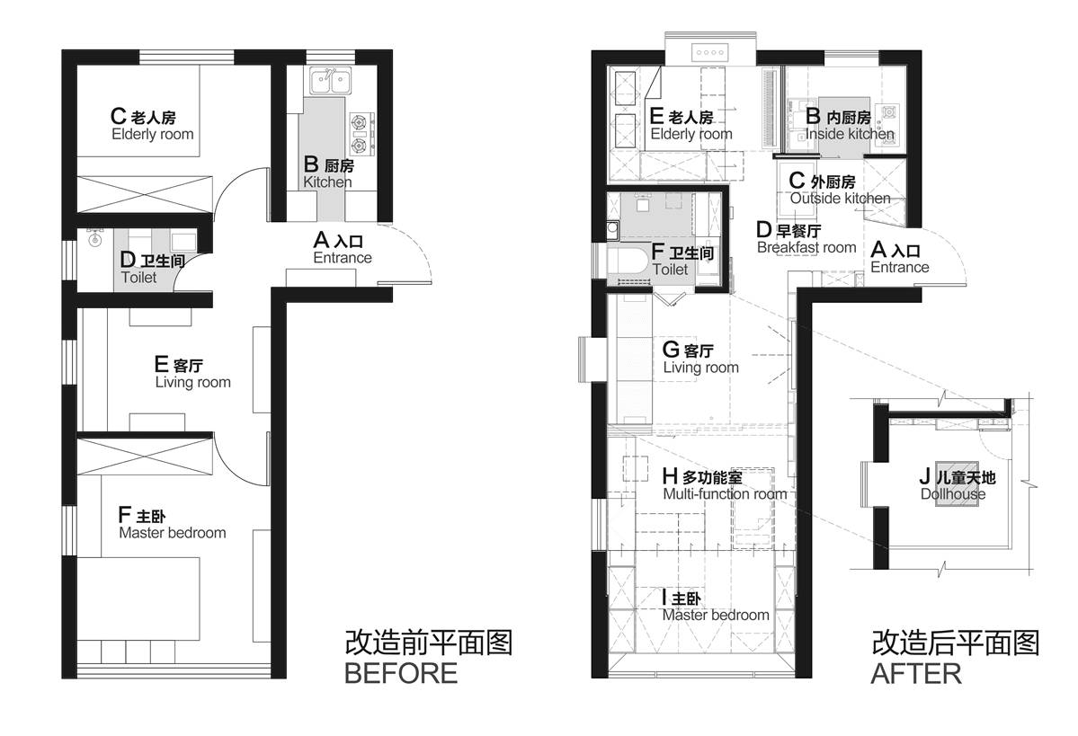 空间够用了,然鹅,设计师说,我还想要让委托人一家住的更好!第二个问题非常微妙,那就是三代人共处一个屋檐下的交流和隐私。大伙儿都知道,婆媳之间的相处自古都是一个非常难以描(xié)述(tiáo)的话题,要不然动不动五十集一百集的家庭伦理剧怎么拍!更何况,家里面还有一个小宝贝,两代人关于孩子教育的差(jiū)异(fēn)大家也是屡(xǐ)见(wén)不(lè)鲜(jiàn)。俗话说三个女人一台戏,这个案例中婆婆、媳妇和小米宝三个女人共处一个小户型的房子中,更需要细致入微的设计啦!