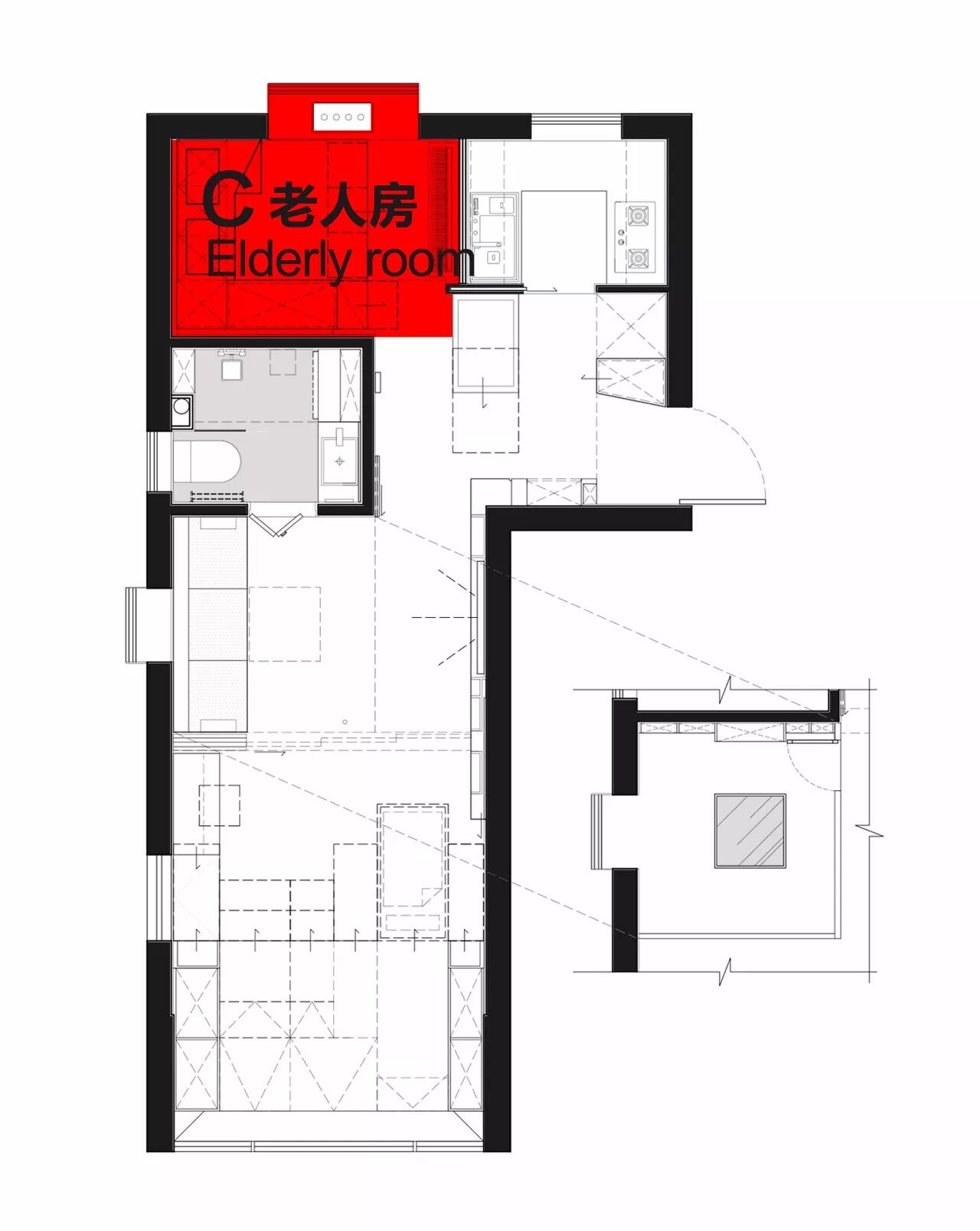 设计师说,还不够!我还想让这一家人生活得更舒适。第三个关键问题是生活习惯和方式的融合。现在,新上海人已经成为了城市建设的主体,来自天南海北的年轻人组成家庭,但始终烙印着故乡的痕迹,在舌尖、在胃里、也在心上。饮食习惯、气候冷暖、风土景观都构成了抹也抹不掉的身体记忆,对于家里的老人来说尤其难以改变。